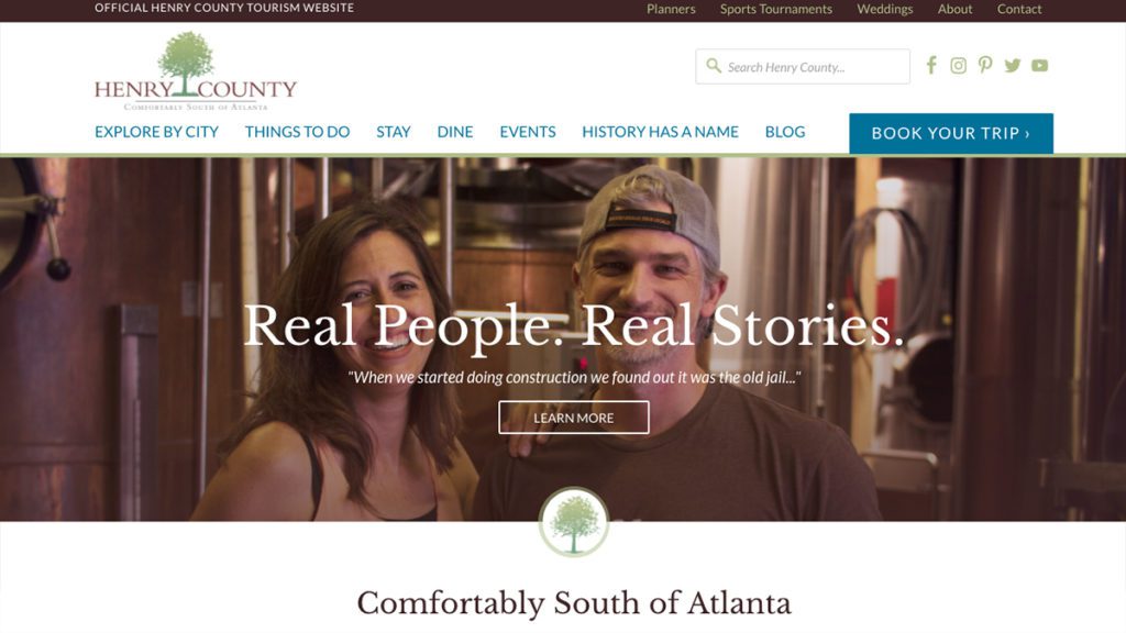 Located just outside Atlanta, Georgia, Henry County has some major, if unknown, draws. Since the launch of their new visitor-focused website, which offers a great local perspective in its award-winning “History Has a Name” section, overall website traffic, especially from social media is up.