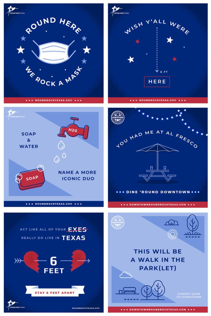 Here are some examples from our friends at Round Rock, TX including social posts, digital ads and signage for safe shopping.